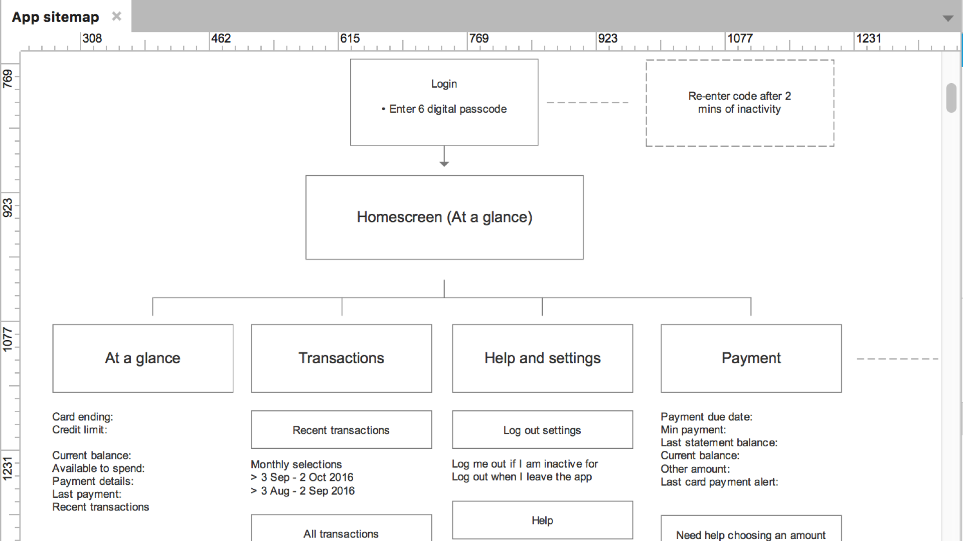 • A diagram of the existing IA of the application, suitable to be expanded to meet future features and requirements.