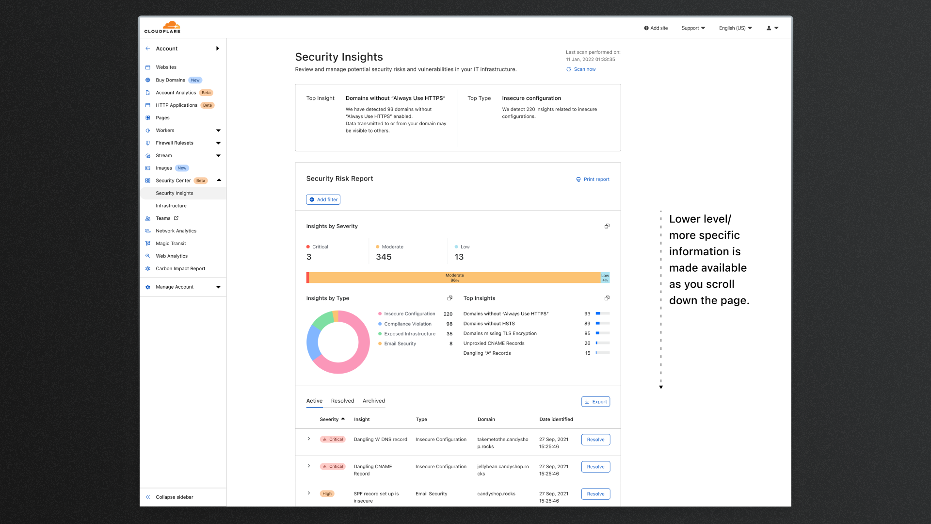Cloudflare Security Center · Actionable Insights