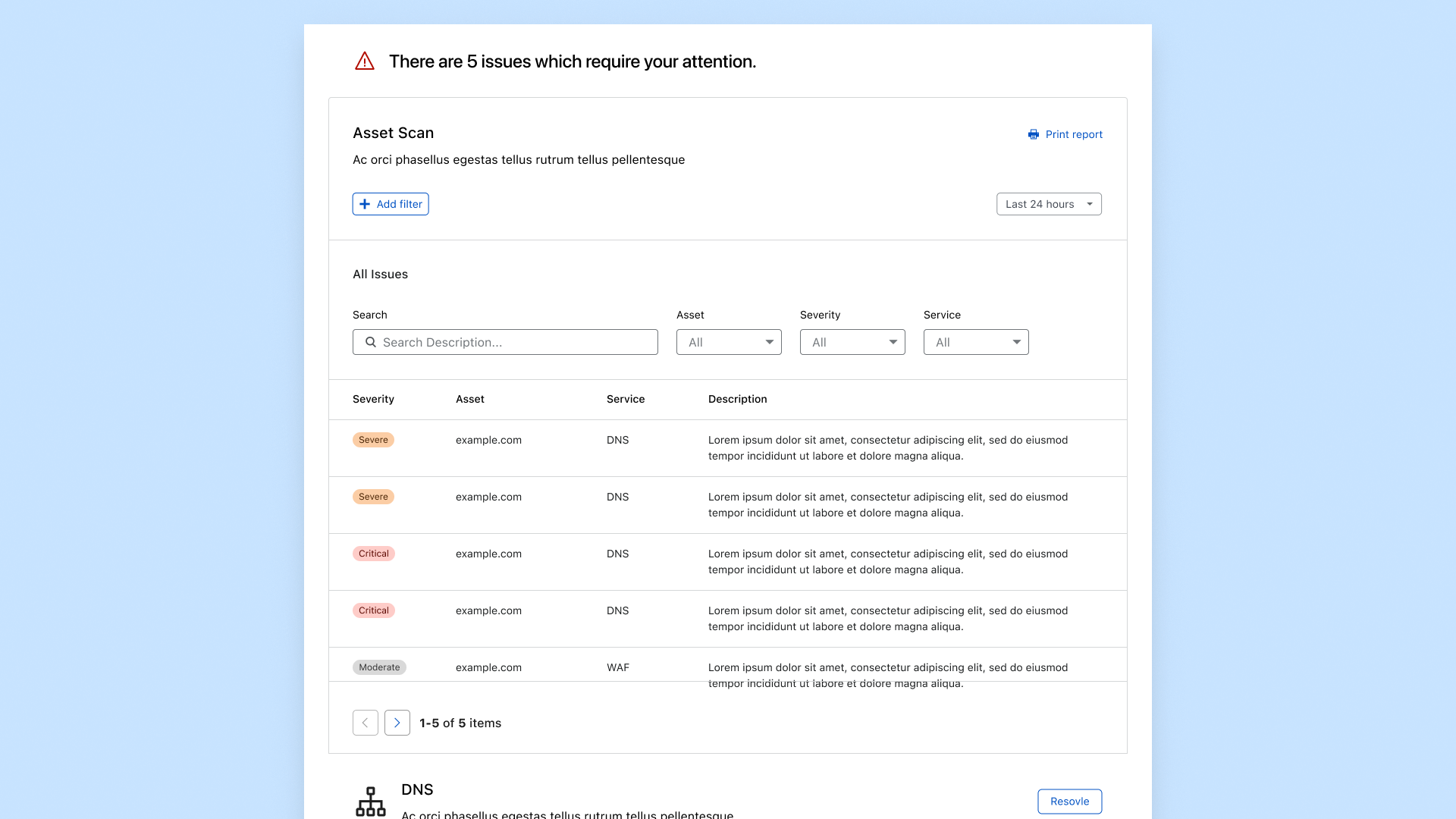 A single page summarising security vulnerabilities discovered across your infrastructure.