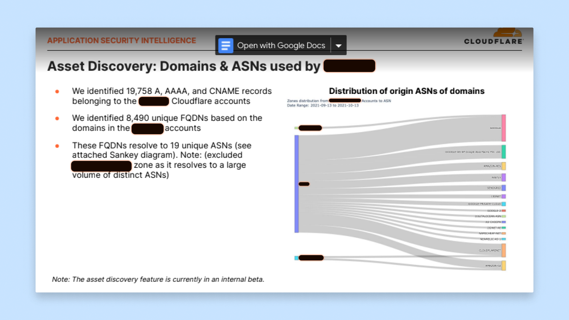 Working methodologiesBelonging to the Emerging Technologies and Incubation group at Cloudflare, the development process of Security Center highly emphasised speed-to-market above all else. This was the definition of a "fast-paced environment" — quickly producing development ready specs, clearly outlining any risks or assumptions, and making UX decisions based off of best practice. That said, we did have the opportunity to validate concepts with customers and internal experts.